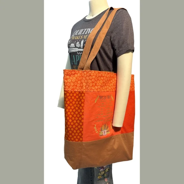 The patchwork front panel adds charm and personality, while the sturdy boxed bottom and reinforced straps make the tote strong enough for produce, library books, quilt class supplies, or your latest fabric haul. It’s lightweight, durable, and roomy—everything you want in a reusable shopping tote with none of the stress.