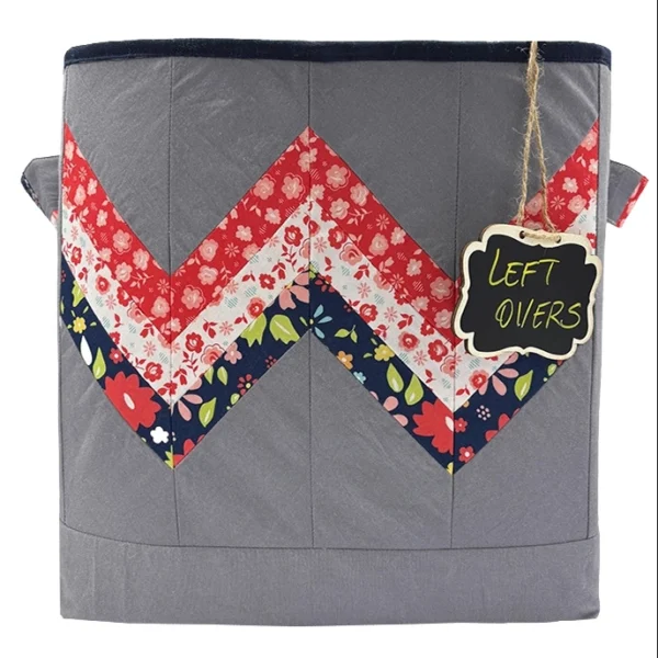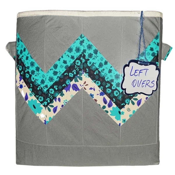 The striking chevron-style pieced panel on the front adds a bold, modern touch while giving you a fun opportunity to show off favorite prints or coordinate with your sewing space. Generously sized handles make it easy to lift, move, and—yes—squat and stash during your quilting workouts, or creative cleaning sessions.
